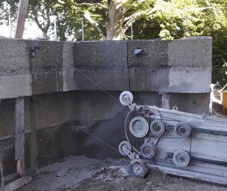 Mit unserer Seilsäge ist es uns möglich, Wand- oder Bodenöffnungen bis zu einer nahezu endlosen Tiefe anzufertigen.
